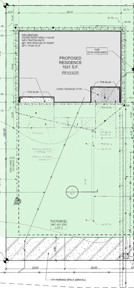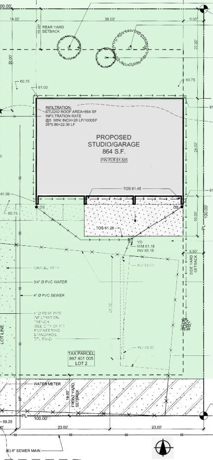 We have two 50'x100' lots, with the "house" on the left (west) and the "studio" on the right (east).